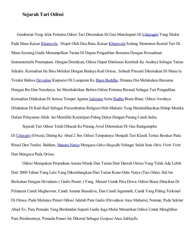 Tari merupakan kombinasi dari berbagai elemen, yaitu tubuh, ritme dan rasa. Sampai di sini saja perjumpaan kita, wassalamualaikum warahmatullahi wabarakatuh, suara merdu ummahat berkacamata yang tetap tampak manis di umurnya yang kian senja itu mengmasiri sebuah program kuliah subuh di salah satu stasiun radio swasta. Sebuah ruangan berbentuk balok mempunyaiukuran 4,8 m x 4,8 m x 3,1 m. Untuk sesaat aku memperhatikan tubuh susi dari kursi praktekku. Sejarah tari odissi gambaran yang jelas pertama odissi tari ditemukan di gua manchapuri di udayagiri yang diukir pada masa kaisar.